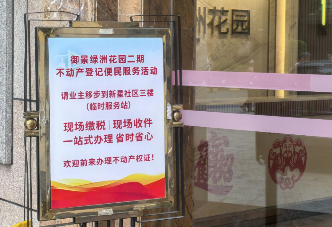 作为问题成功解决的关键标志和便民利民的核心举措,区规划资源分局联合区税务局、江埔街道办、区住建交通局及社区居委等部门,在御景绿洲小区内设立了不动产登记临时服务站,正式启动“窗口前移、服务下沉”的便民服务。6月6日,正式进驻御景绿洲小区,为业主提供“现场咨询、现场查册、现场缴税、现场收件”一站式服务,实现业主“足不出小区”即可办证。运行首日即高效收件50宗,获得了业主的一致好评。